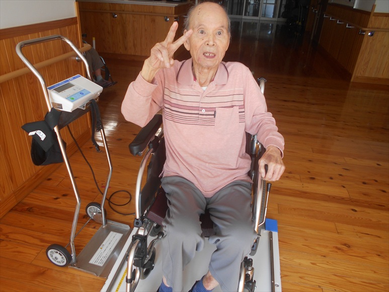 当施設では、ご入居者様の健康維持のため、月に一度の体重測定を行っています。