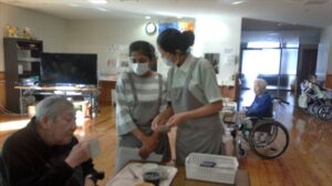 今日の優・悠・邑 和合 2025.11.6 初出勤!! 本日より新しい職員さんが出勤されました。 去年、入職された職員さんも業務に慣れおり、みんなで指導できる環境に感謝。 入居者様も温かく迎えてもらえたので、普段以上に楽しい雰囲気がフロアにありました。