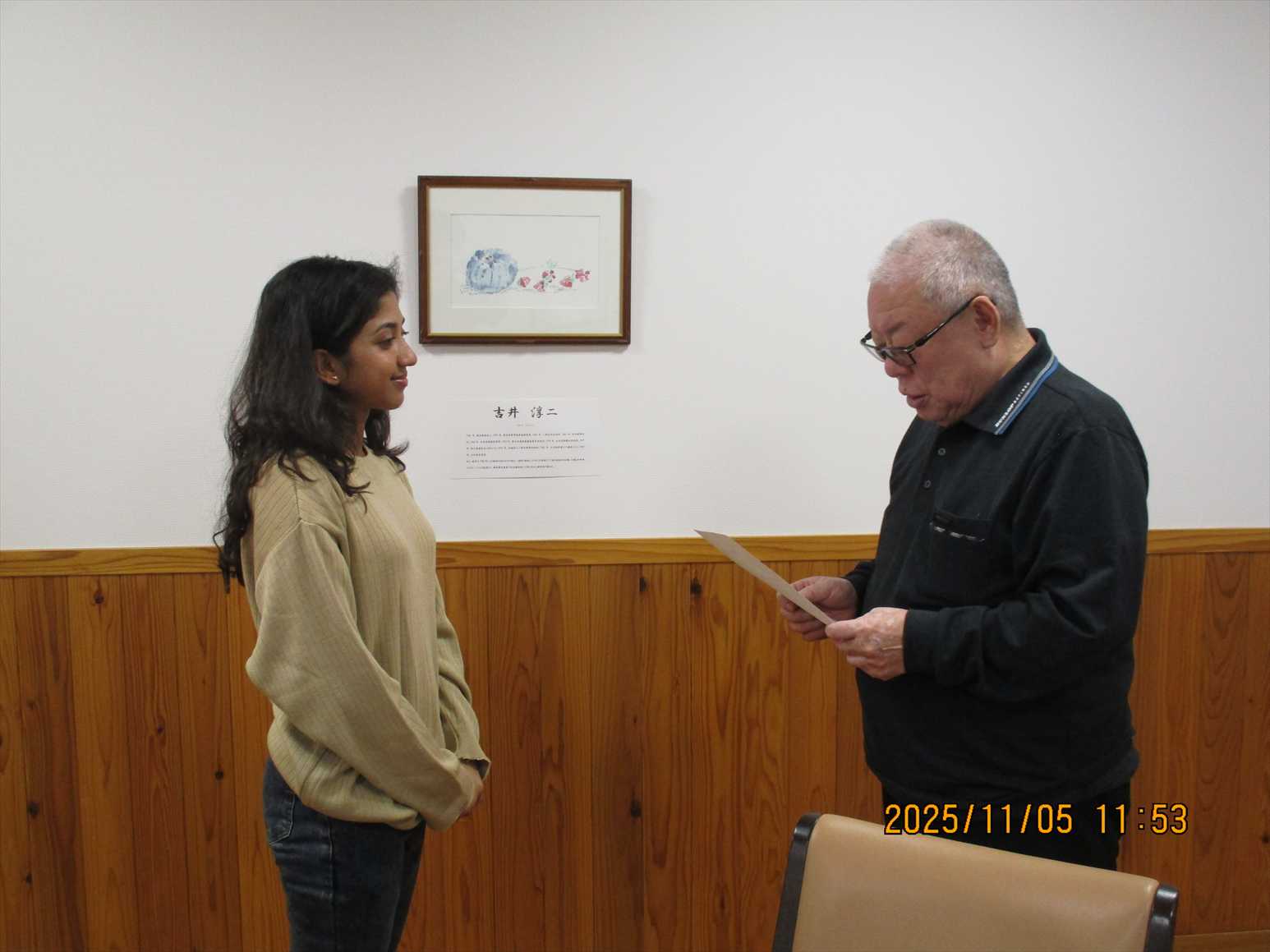 今日の優・悠・邑 和合 2025.11.5 喫茶店 今日は午後から施設1階にある喫茶店へ行きました。 温かいコーヒーを飲んで会話が弾みます。 皆さんとお話をしながらゆっくりと楽しんで頂きました。 そして、新しく仲間になる職員に辞令交付がありました。 素敵な笑顔の職員が一人増えました。 一緒に頑張りましょう。