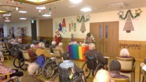 今日の優・悠・邑 和合 2025.12.16 嬉しがり屋 行時&千代和さん 今日は午後から嬉しがり屋 行時&千代和さんが来てくださいました。 楽しいお話と歌を披露してくださいました。 一緒に歌ったり、素敵な歌を聴いたりしながら、とても楽しい午後を過ごしました。 そして、お風呂では柚子風呂も始まっています。 寒い日にあったかい柚子風呂で身体の芯まで温まって頂きたいです。