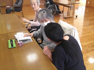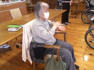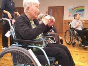 今日の優・悠・邑 和合 2025.11.10 実習生さんと体操 本日は、昨日の雨から良い天気になりました。 本日は、介護労働講習の実習生さんがみえました。 水分提供、床掃除など実務もされ、空いた時間では 利用者様と交流されていました。 午後は、体操のレクを一緒に行いました。 利用者様は、いろいろな体操をされ、笑ったり 大きな声を出しながら、楽しく体操をされていました。 寒い日ですが、沢山、手足を動かし身体もポカポカ温まりました。