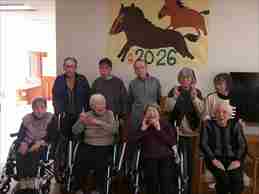 今日の優・悠・邑 和合 2026.1.17 干支の壁画作製 年が明けて半年経ちました。 ショートでは毎年その年の干支の壁画作製に取り組んでいます。 半年前8月頃から作り始め、12月までかかっての大作です。 皆さん、コツコツと貼り絵を行い、昨年末見事に完成しました。 今日は、その壁画の午の前で記念写真を撮りました。 小さく手でちぎった色紙を1枚ずつ貼り合わせる作業は、 とても大変です。 でも、この完成した絵を見ると苦労したかいがあります。 皆さん、素敵な笑顔です。