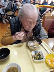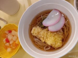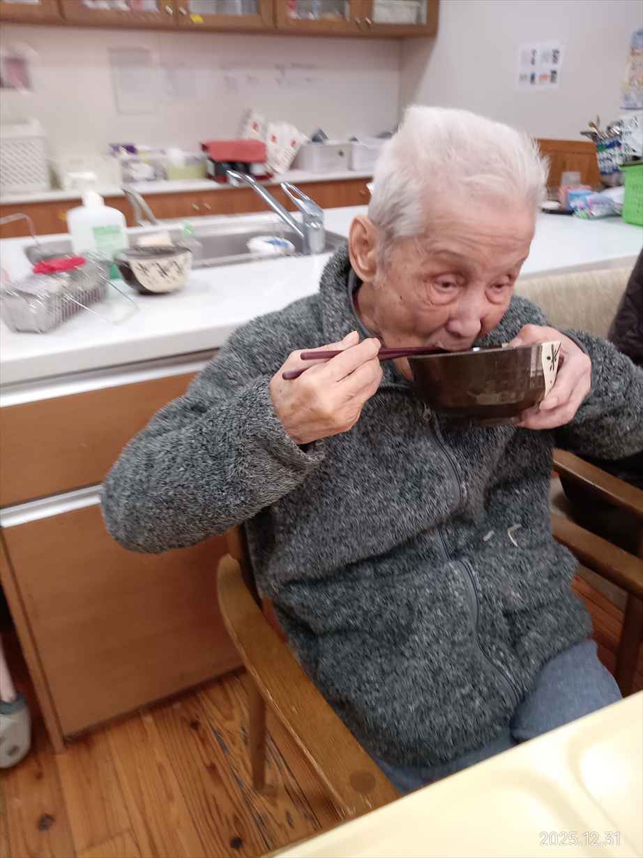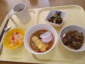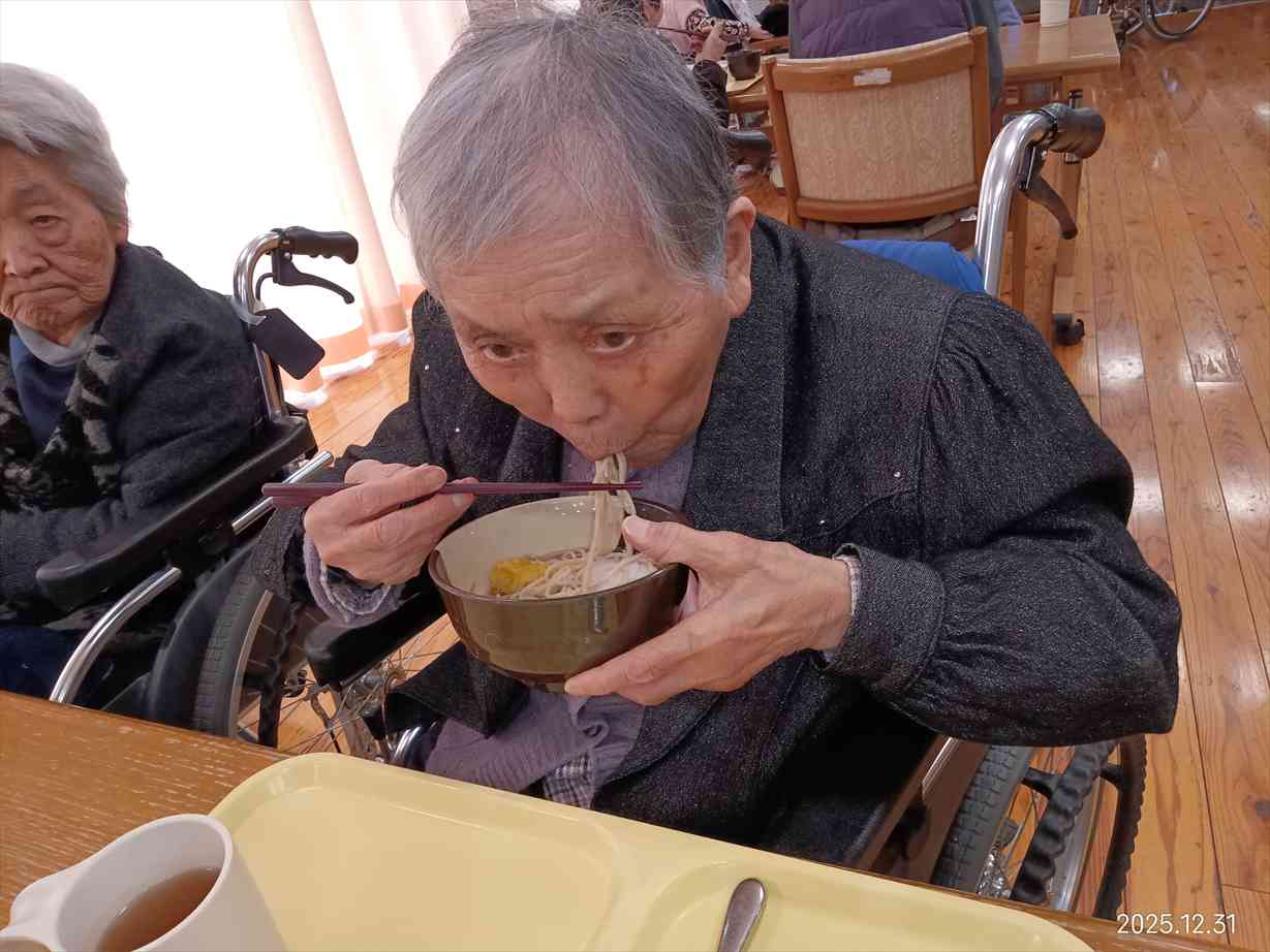 今日の優・悠・邑 和合 2025.12.31 年越そば 今日の昼食は年越しそばでした。 天ぷら入りで「とても美味しかった。」と好評でした。 「1年早かったわ、それは何も困ったことがなかったからかな、嬉しいわ。」と利用者様が話されました。 お蕎麦のように細く長く健康で楽しみがある穏やかな日々が続きますようにと皆さんでお話して、今年1年に感謝しました。