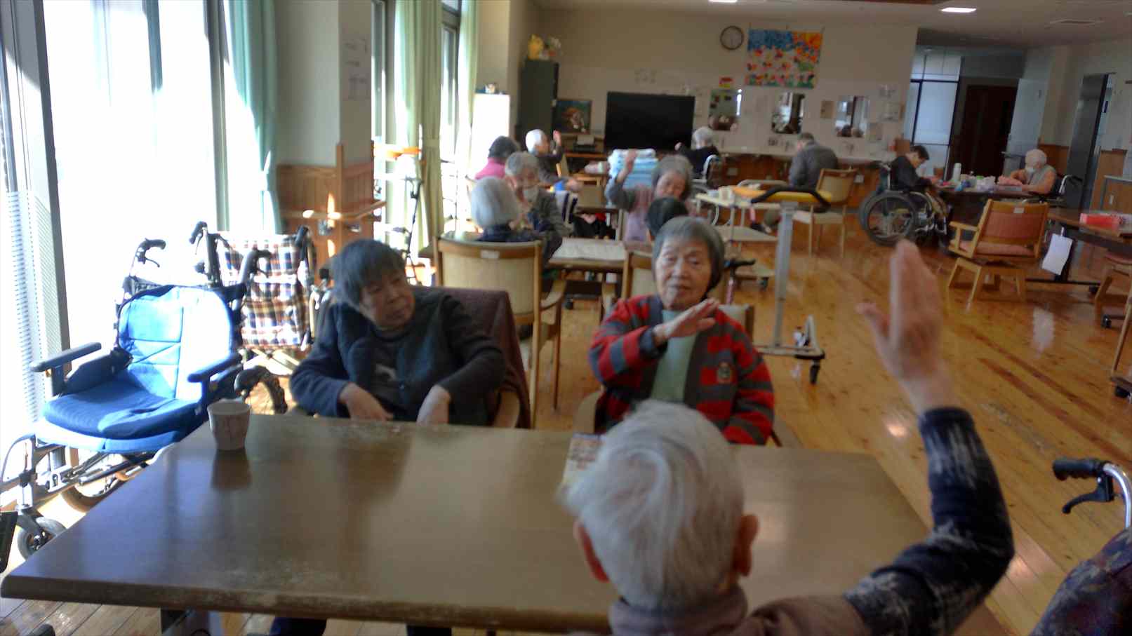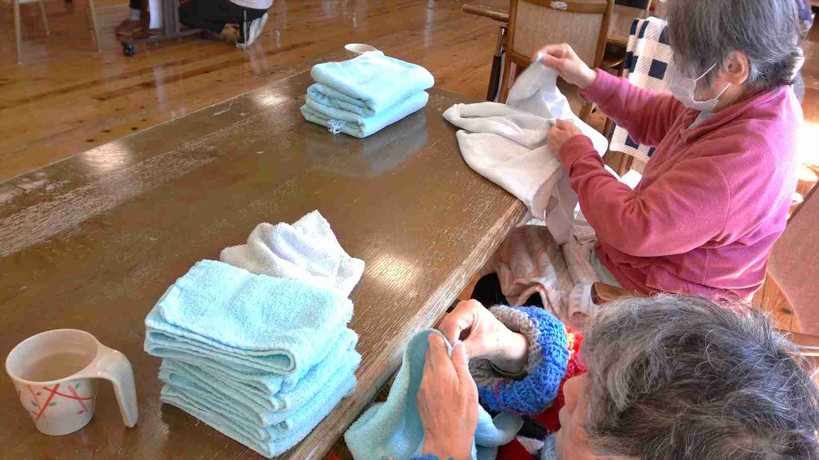 今日の優・悠・邑 和合 2026.3.12 日中の様子 今日は晴れですが、まだまだ寒いですね。 午前中は塗り絵をされる方 新聞やチラシを見ている方など、皆さんそれぞれに好きな事をして過ごされていました。 洗濯物のタオルを丁寧に畳んでくださる方もたくさんみえます。 いつもありがとうございます。 11時からは毎日恒例のラジオ体操をしました。 15時のおやつの時間は温かい緑茶とおやつを楽しまれていました。