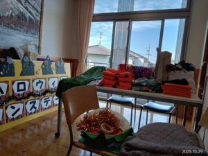今日の優・悠・邑 和合 2025.10.30 明日はハロウィン 明日は午後からハロウィンパーティーが行われます。 職員がそれぞれ歌や踊りなど催しものを準備しております。 楽しんで、喜んで頂けれたと思っております。