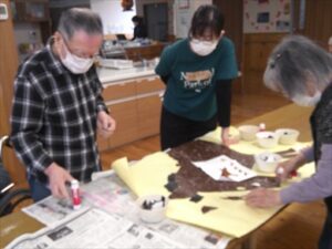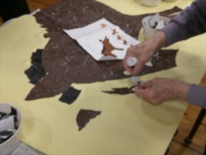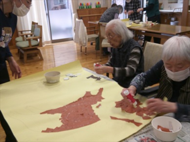 今日の優・悠・邑 和合 2025.11.12 来年の干支飾りつくり 午後から実習者の方と一緒に来年の干支、馬の ちぎり絵貼りをしました。 いつもは少ない人数で行っていますが、 今日は賑やかにワイワイと楽しく作業が はかどりました。 完成までは、まだ、かかりそうですが、 年末までには間に合いそうです。 $CoMmEnt«g