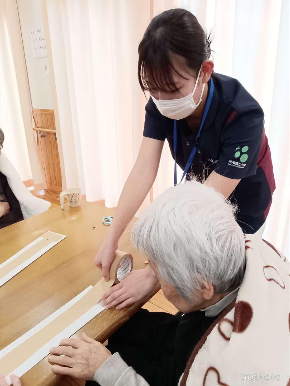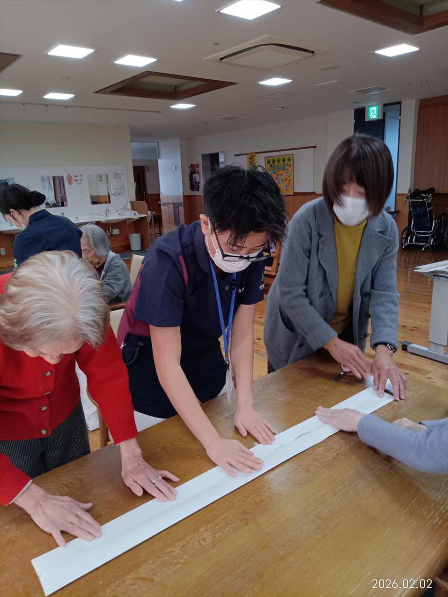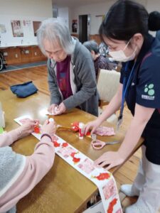 今日の優・悠・邑 和合 2026.2.9 梅の花飾りづくり 入居者様と実習にきている看護学生の方々一緒に施設内の飾りつけを作りました。 一緒になって皆さん笑いあって作り上げました。 紅白の梅の花で満開になりました。 寒い日が続いていますが春は少しずつ近づいてきています。 3月には外出で梅の花を見に行く予定があります。 本物の梅が咲くまでは梅の花飾りを楽しみます♪