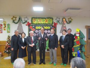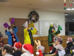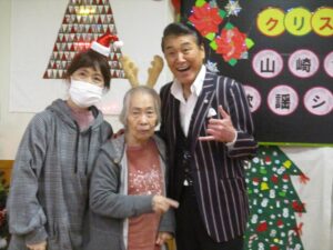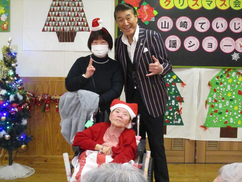 今日の優・悠・邑 和合 2025.12.26 楽しかったクリスマス会(後編) 24日のクリスマス会の後編です。 皆さん大変喜んで頂きました。 今年は、来賓の方も、ご家族の方も大勢来ていただきました。 山崎ていじさんのショーの最後は、「伊勢街道まつり唄」 てるてる座の方、職員がばっくで踊り、大盛況でした。 最後は、副施設長の挨拶。 その後、山崎ていじさんと記念撮影。 来ていただいた、来賓の方、ご家族も大変喜んで頂きました。 会場も素敵に飾られ、クリスマスも楽しく過ごすことができました。 担当の職員さん、お疲れ様でした。