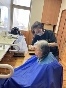今日の優・悠・邑 和合 2025.12.15 理美容 冬でも朝から晴れて良い天気の日でした。 3階では、入居者様の理美容を実施しました。 髪を整えることは、身だしなみを保つだけでなく 気分転換や生活意欲の向上にもつながります。 入居者様が理美容を実施した後、お茶を飲みながら「さっぱりした」 気持ちが明るくなった話し声が聞こえました。 さっぱりして笑顔になった入居者様の姿です。
