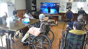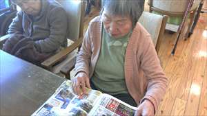 施設の中で生活されている入居者は、新聞を読んたり、テレビをご覧になったと、それぞれゆったりと時間を過ごされています。