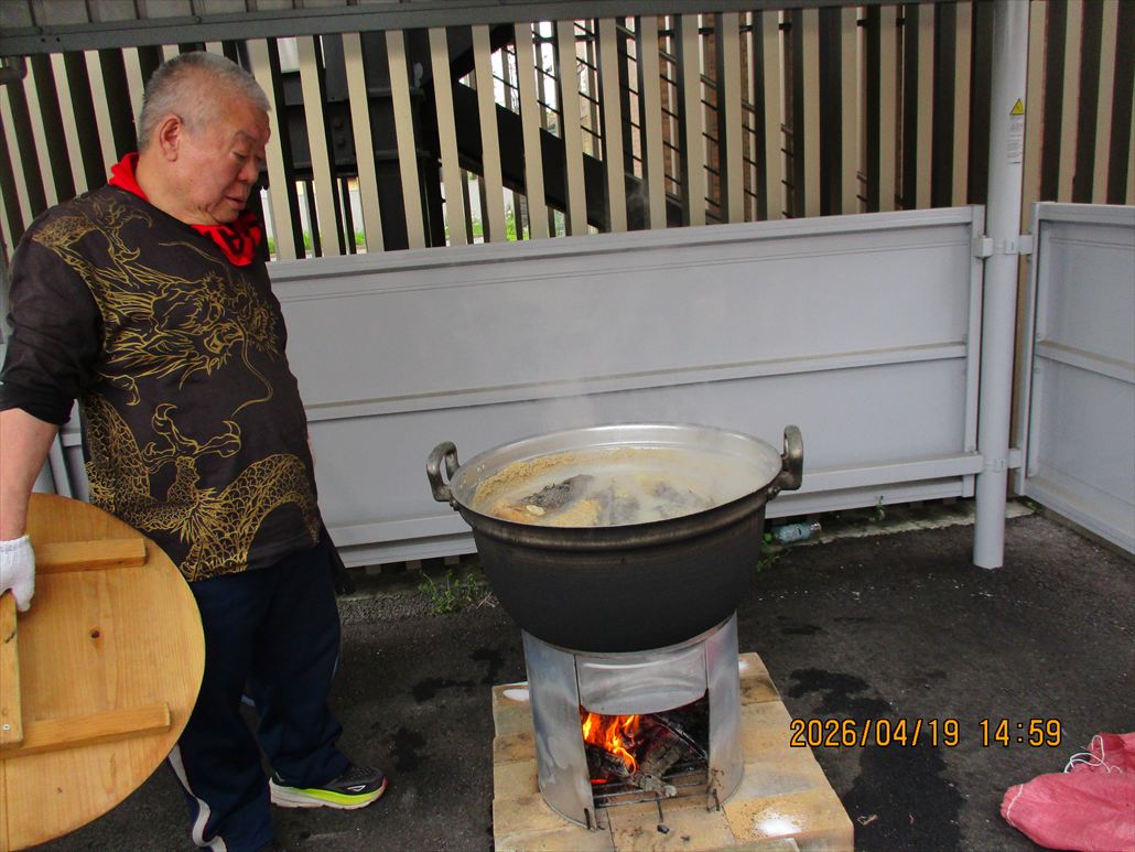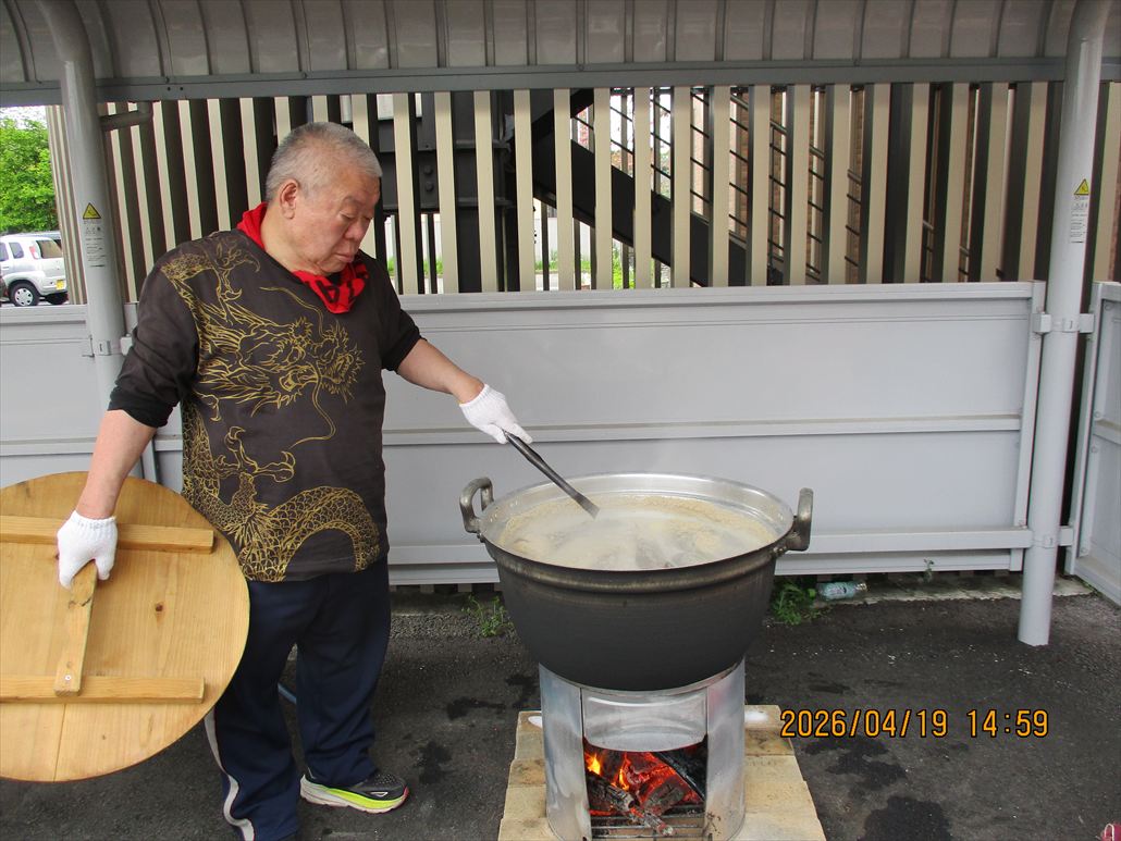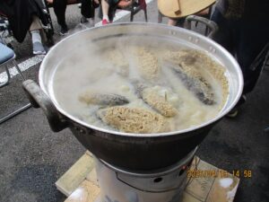 しっかり下ごしらえを行い、たけのこを大きな窯で屋外で茹でていきます。
