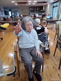 毎日、テレビ体操に参加される方もみえます。認知症の方にも理解しやすい内容のため集中して取り組まれます。取り組まれた後は、椅子に座って疲れてみえる様子も見られて夜も熟睡される方もみえるので、このテレビ体操の日課も批判される人もいれば生活リズムを整えることが出来ており、賛否両論です。