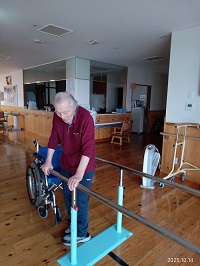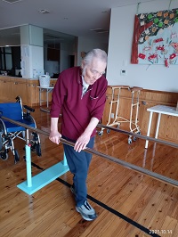 平行棒での歩行練習を頑張ってみえます。毎日、長時間の歩行練習を取り組まれるようになり、便の性状も良くなり、体は正直だなと改めて教えてもらいました。