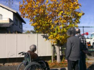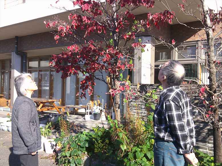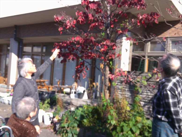 今日の優・悠・邑 和合 2025.11.16 苑内も紅葉 今日はぽかぽか陽気で風もなく、とても穏やかな天気でした。 ひなたぼっこをするにはうってつけの天気です。 苑内を散策していたら木々が緑から黄色や赤色に変わってきていました。 「少しみないうちに紅葉したね」と紅葉した木々を眺めてみえました。 朝晩と日中の寒暖差に気をつけ体調管理をしていかなければいけないですね。