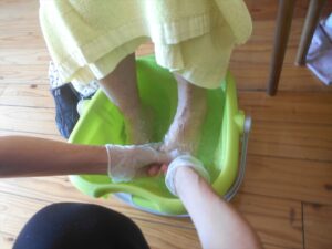 温まったところで、すこし足の裏のツボを刺激して、マッサージ。