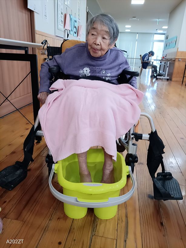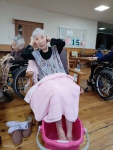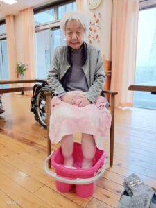 今日の優・悠・邑 和合 2026.4.18 足浴 今日は、足浴をしました。 みなさんリラックスでき顔もニッコリでした。 足を温めることにより血行も良くなります。 「気持ちいいナー またやってね。」と皆さん 言われました。 喜んでいただけてスタッフもとてもうれしいです。