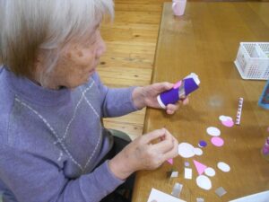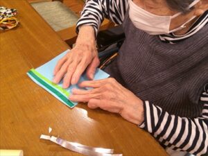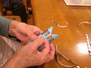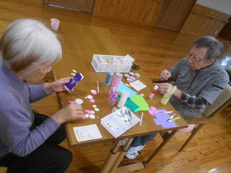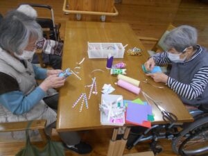 今日の優・悠・邑 和合 2026.4.10 鯉のぼりの工作 今日はあいにくのお天気で雨が降っていましたがそろそろ新緑の季節を迎えます。 5月の行事といえば端午の節句です。 季節の移り変わりを楽しむことができたらいいなと思い、今回は1階の利用者様と一緒に鯉のぼりを作りました。 利用者様は細かい作業で、最初は「できない。難しそうやね」と話しながら作業をされていました。 職員も手伝いながら作業を進めました。 手先が器用な利用者様が多く、いつの間にか完成していました。