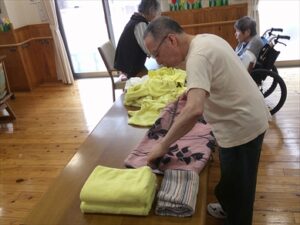 洗濯物を畳むのも手慣れたものです。