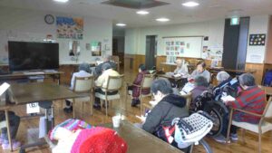 今日の優・悠・邑 和合 2026.1.27 3階でお参り 今日は曇り空でした。寒い日が続いています。 午前中に3階でお参りがありました。 皆さん、一生懸命お経を詠まれていました。 経本を見ながら詠まれる方や経本なしでお経を唱えて見える方もみえました。 今日は多くの方がお参りに参加されていました。 お経の後は身体も心も暖かく感じますね。